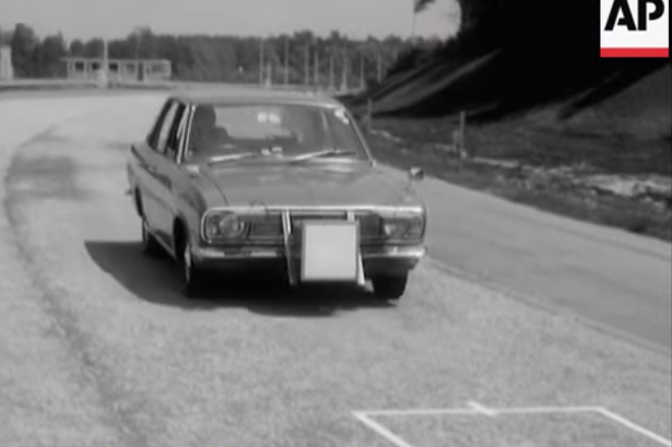 El vídeo explica en profundidad cómo en aquella época tenían que depender de impulsos electrónicos informáticos transmitidos al coche a través de una unidad receptora especial fijada en la parte delantera. La unidad interpreta las señales captadas de la pista incrustada para cambiar el rumbo o la velocidad del coche. En 1971, el Road Research Laboratory del Reino Unido mostró este primer prototipo de coche autónomo que, por desgracia, solo podía ajustar la dirección de forma inestable. Esto todavía era impresionante en aquel entonces: "Mira, ¡sin manos! Y sin conductor, para el caso", dice el narrador, explicando que el coche es capaz de conducirse por sí solo mediante "impulsos electrónicos informáticos transmitidos al coche a través de una unidad receptora especial fijada en la parte delantera".